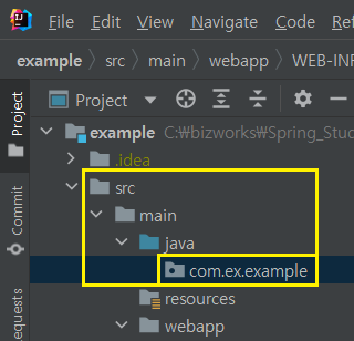 - src/main/java 내에 com.ex.example 폴더 생성하기