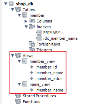 - shop_db(데이터베이스) 내에 member(Table) 내에 index를 보면 'idx_member_name'이 만들어져있음을 알 수 있다.!!