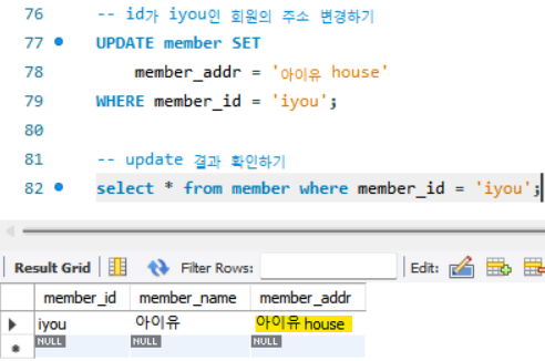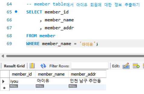 기본미션 : shop_db에서 '아이유' 회원에 대한 정보만 추출하기
