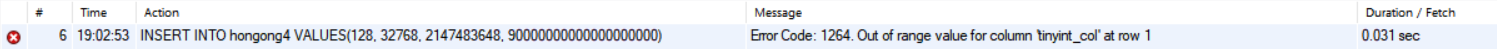 2. TINYINT 형식의 칼럼에 128을 입력 시 생기는 오류는?